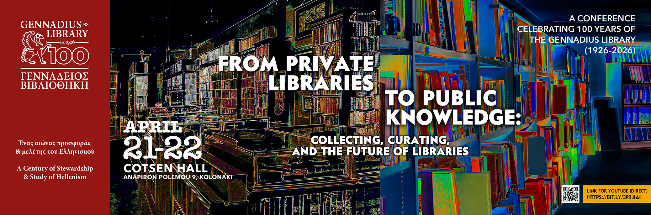 Η Γεννάδειος Βιβλιοθήκη συμμετέχει στον Περίπατο Βιβλίου, που θα πραγματοποιηθεί το Σάββατο 25 Απριλίου. Συμμετέχει στη δράση με την έκθεση «Γεννάδειος 100. Ένας Αιώνας Έμπνευσης», που θα είναι ανοικτή για το κοινό 12.00-18.00. Το διάστημα 13.00-14.00 θα γίνει ξενάγηση από την Ειρήνη Σολομωνίδη, Επικεφαλής Βιβλιοθηκάριο και μία εκ των επιμελητριών της έκθεσης.