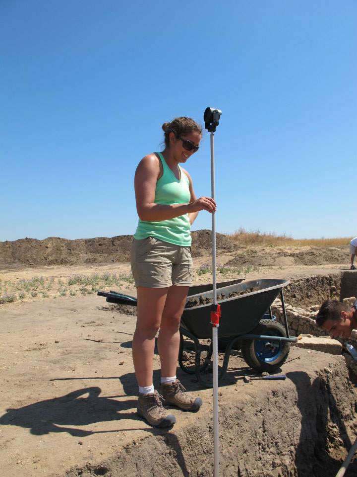 Left: Charlotte Williams supervising excavations at MTAP in 2015;