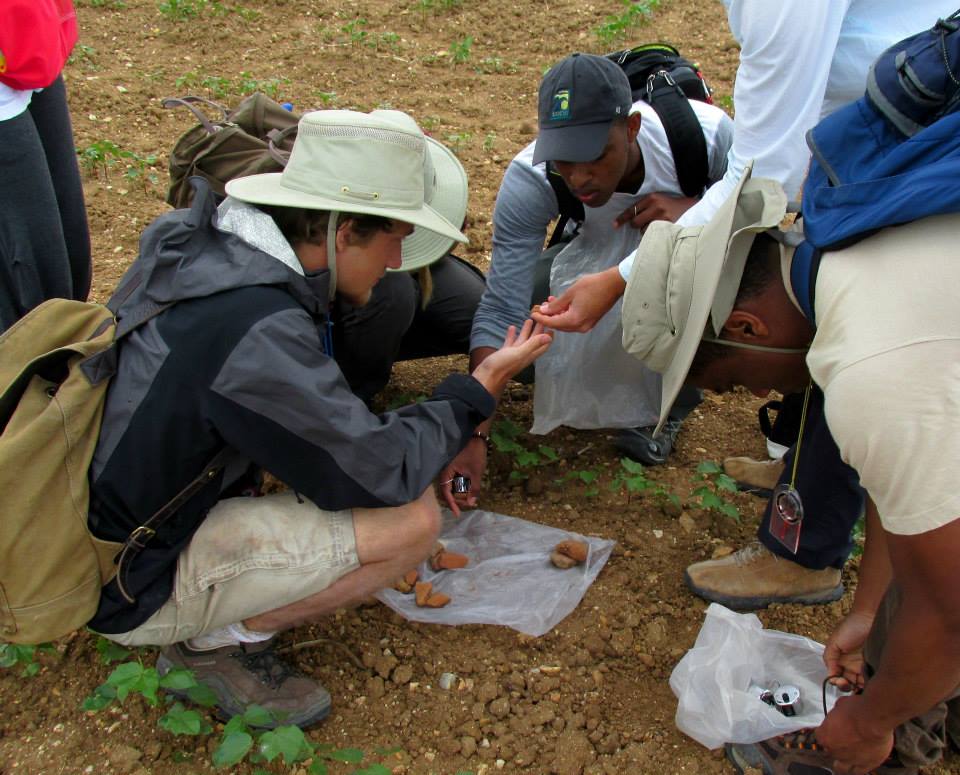 right: Nathan Arrington with finds from the bottom of a well at MTAP in 2015 (Photo A. Weaverdyck)