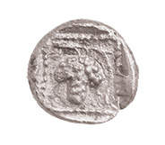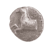 Silver coin of Maroneia (922) with prancing horse on obverse and grape cluster on reverse, 377–365 BCE (Photos O. Kourakis)