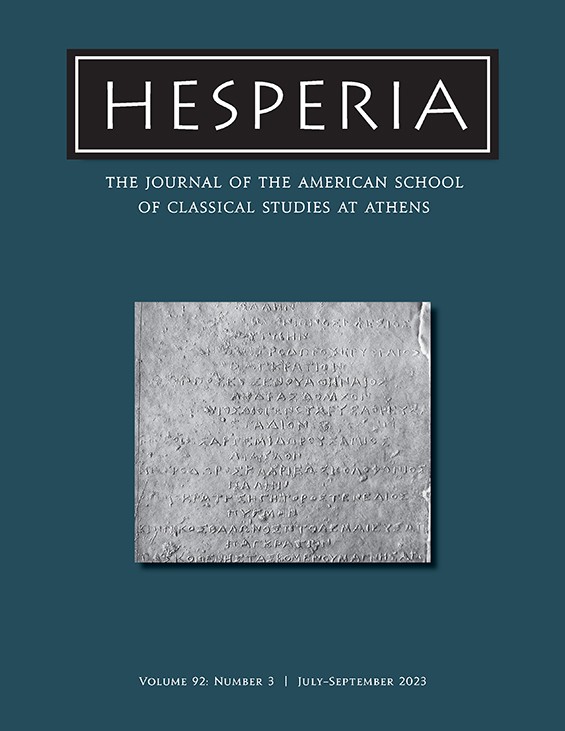 Hesperia is published quarterly by the American School of Classical Studies at Athens. Founded in 1932 primarily to publish the work of the School, the journal welcomes submissions from all scholars working in the fields of Greek archaeology, art, epigraphy, history, materials science, ethnography, and literature, from earliest prehistoric times onward. Hesperia is a refereed and indexed journal, available in both print and electronic formats.