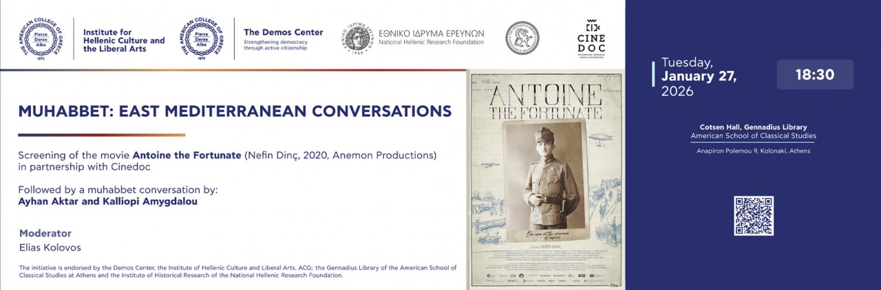 Muhabbet is an initiative sponsored by the American College of Greece, the National Hellenic Research Institute and the Gennadius Library, aiming at bringing together scholars, students, and people interested in the shared social history and cultural heritage of the East Mediterranean. We wish to hold discussions about our common legacies in an informal and friendly environment, like that of the coffeehouses, which originated in the Ottoman East Mediterranean, where people used to come together to develop amicable conversations called muhabbet.