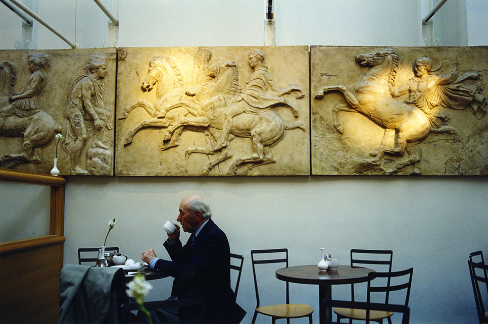 Two major sculptures of the ancient Athenian Acropolis have been reprised in many places and at many times since antiquity. The British photographer Ian Walker has captured in film the enduring presence of the Erechtheum’s Caryatid and the Parthenon’s frieze in various guises from London housing projects to a Cleveland mansion.
