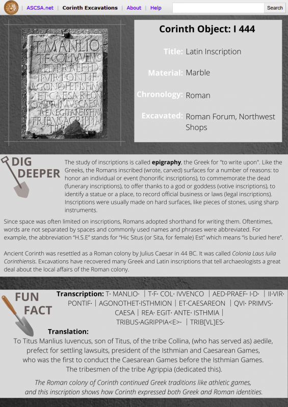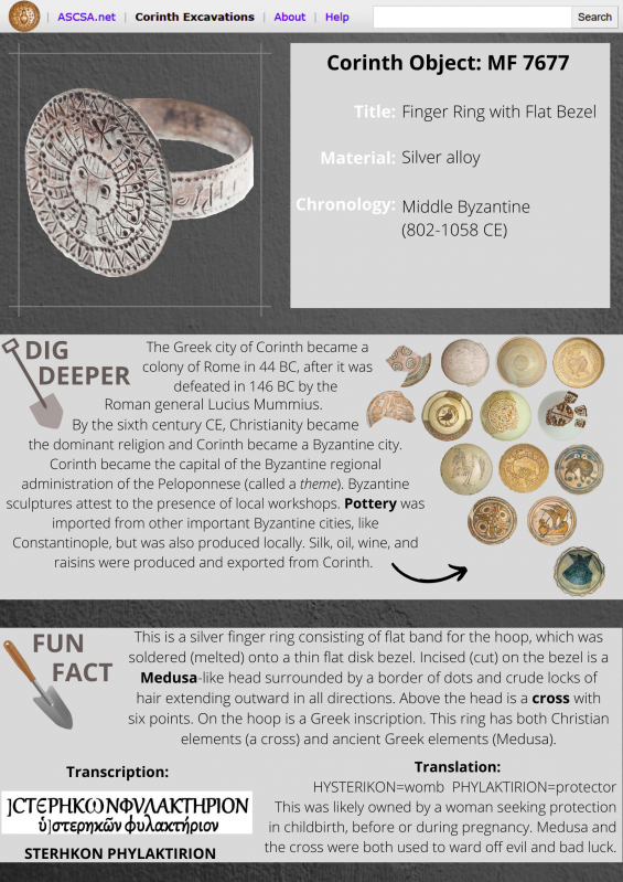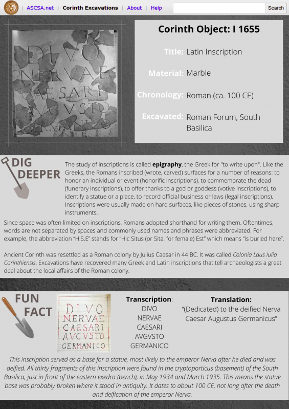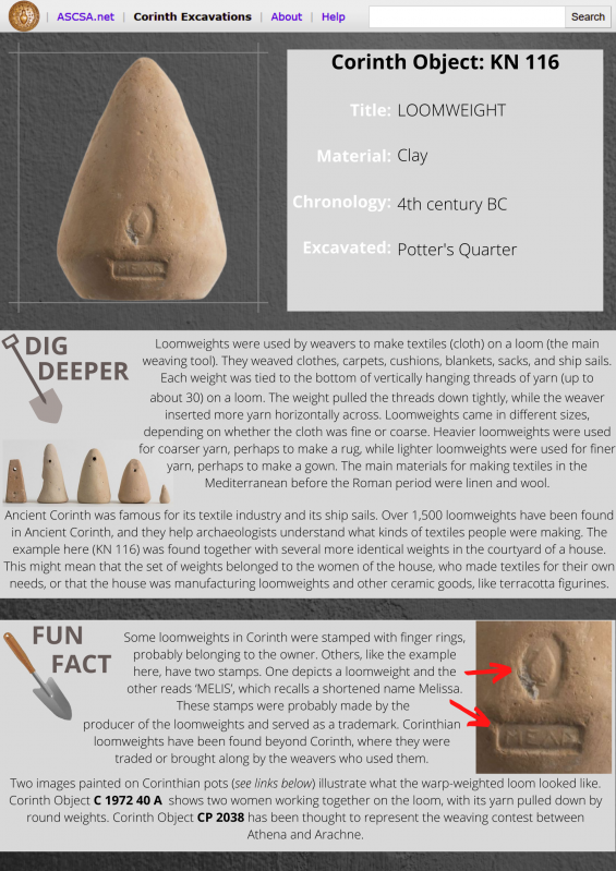 - Search the Corinth museum's artifact database here.