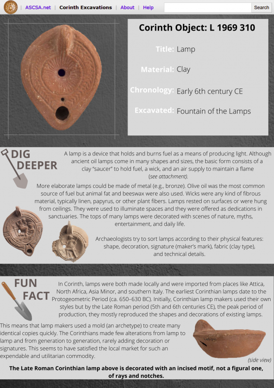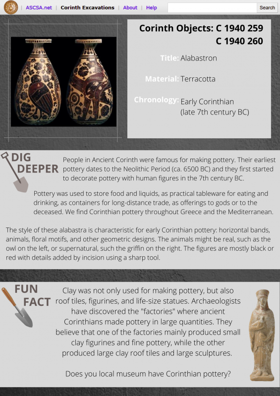 Discover some of the artifacts from Ancient Corinth! Download the files below to learn more about the different types of objects in the Corinth collection.