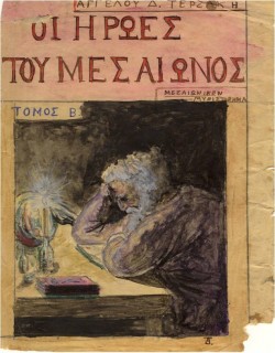 - Ιδιόχειρο νεανικό μυθιστόρημα σε τετράδια δύο μεγεθών με λίγες διορθώσεις καθώς και ημερομηνίες στην αρχή ή στο τέλος κάποιων τμημάτων, ενυπόγραφο, ημιτελές; Στην πρώτη σελίδα φέρει τη σημείωση: «Ήρχισα αυτό το βιβλίον την 14ην Απριλίου του έτους 1921 (Μ. Τετάρτη, ώρα 8 ¼ εις την επί της οδού Πιπίνου 40Α οικίαν. Αθήναι)», ένθετο σχέδιο με μολύβι, αριθμημένες 620 σελ. Χειροποίητο εξώφυλλο με εικονογράφηση του Α.Τ. (μονογραφημένο). Στην αρχή του Βιβλίου Β΄ (Εις την Χώραν των Ιπποτών) ολοσέλιδη εικονογράφηση του Α.Τ., για την οποία έχει χρησιμοποιηθεί χαρτί που στην πίσω πλευρά φέρει άσκηση γραμμικού σχεδίου, τη μονογραφή του Α.Τ. και τη χρονολογία 1920.