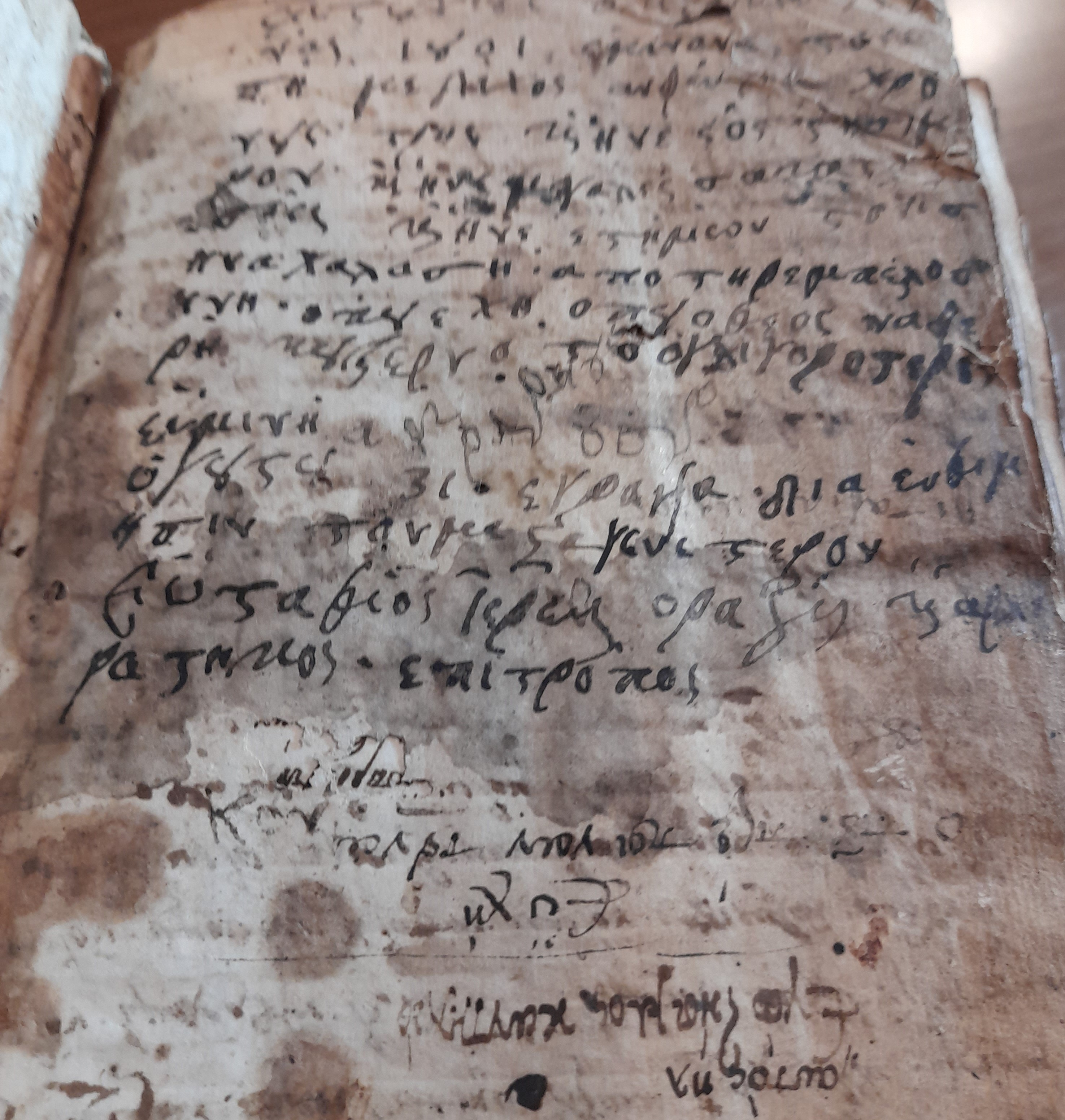 «Εις του<ς >χι<λι>ους οκτακοσους ενας 1801 εμινανε στονιση με διχος ανφεντης χρονους τρης και ηνε εος στησιμερον και ηνε μεγαλες σακαταστασιες και ηνε ετημων στονισι να χαλασι από τη ρεμπελεοσηνη όταν εχη οπου ο θεος να φερη και στεργο στο ογλιγοτερον. Εν μινη ογουστου 31 εγραψα δια ενθιμησιν τον μεταγενεστερον. Ευσταθιος ιερευς ο Ραζις και αρχιρατηκος επιτροπος».