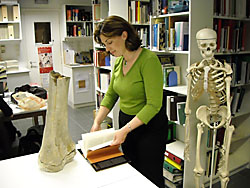 Dr. Deborah Ruscillo Examining the Fossil Elephant Bone