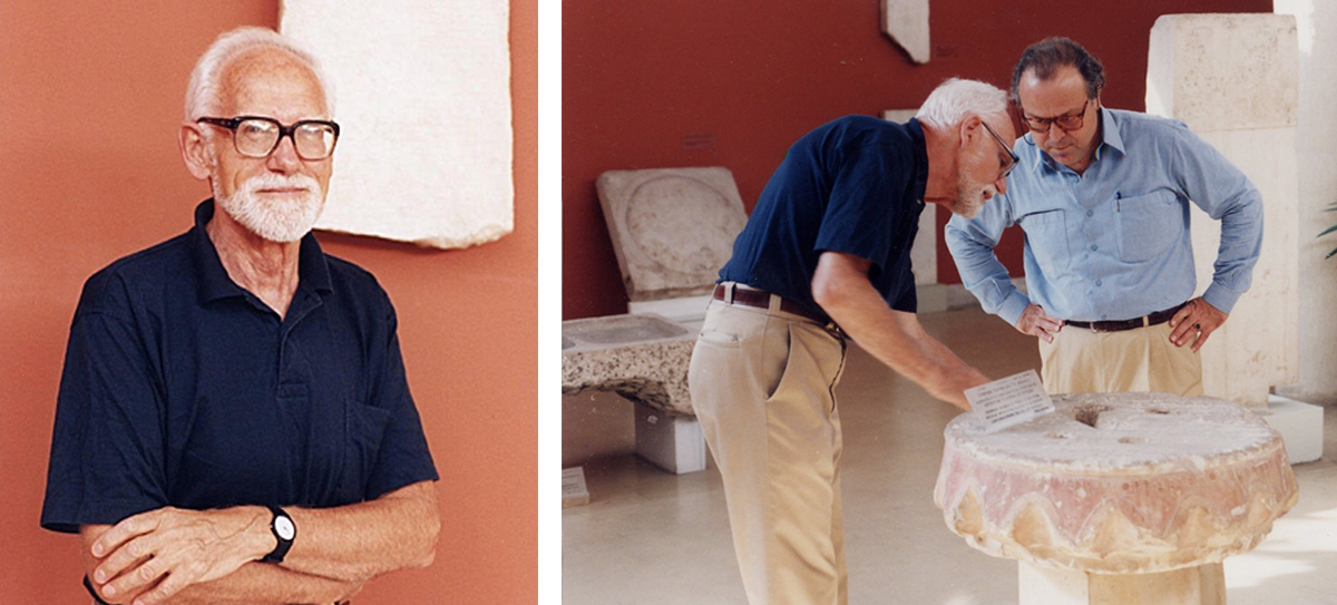 Left: Michael with the Themistocles Decree at the Epigraphical Museum in Athens, ca. 1980s. Right: Michael with Dr. Charalambos Kritzas at the Epigraphical Museum in Athens, ca. 1980s