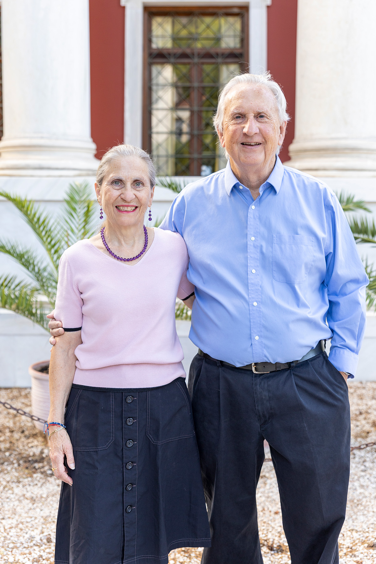 2026 Athens Prize recipient Jack L. Davis, with his wife and co-director of the Pylos Excavations, Sharon R. Stocker