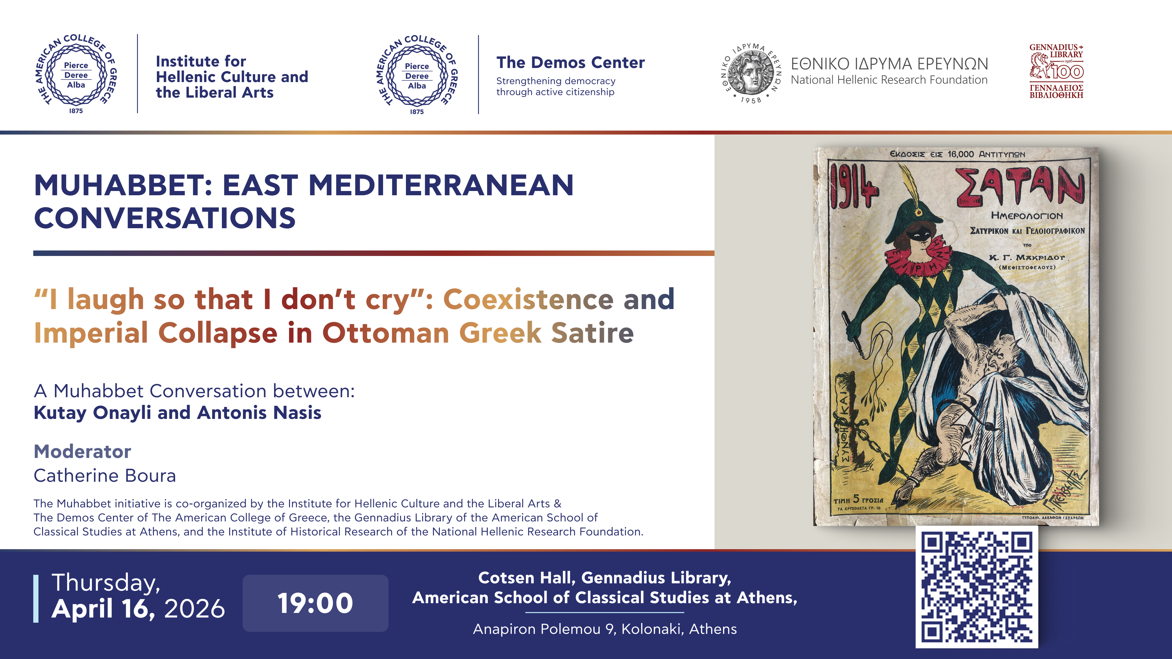 Τρίτη, 16 Απριλίου 2026, 19:00 | Cotsen Hall, Γεννάδειος Βιβλιοθήκη, Αμερικανική Σχολή Κλασικών Σπουδών στην Αθήνα, Αναπήρων Πολέμου 9, Κολωνάκι, Αθήνα