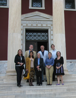On the initiative of Alfonso Lucini Mateo, Ambassador of Spain to Athens, and his wife, Carmen Serrano de Haro, architect of the Spanish Ministry of Public Treasury, a small group of Spanish intellectuals visited the Archives of the Gennadius Library on the evening of May 14th, 2015. Carmen Asenjo of the Ortega y Gasset Foundation, Beatriz Rodríguez, Head of Institutional Relations at the Cervantes Institute, Fernando Rodríguez Lafuente, former Director General of the Cervantes Institute, and Daniel Martín Mayorga, General Manager of the Royal Spanish Academy, came straight to the American School from the Athens airport with one request: to see the diaries of Heinrich Schliemann. With the guidance of Alfonso and Carmen, they read parts of diary A 4, where Schliemann records in Spanish his journey to Southern France and Spain in 1859 (especially his description of San Ildenfonso). Maria Georgopoulou and I also shared with our special guests other parts of the large Schliemann archive, including the Mycenae and Troy diaries.