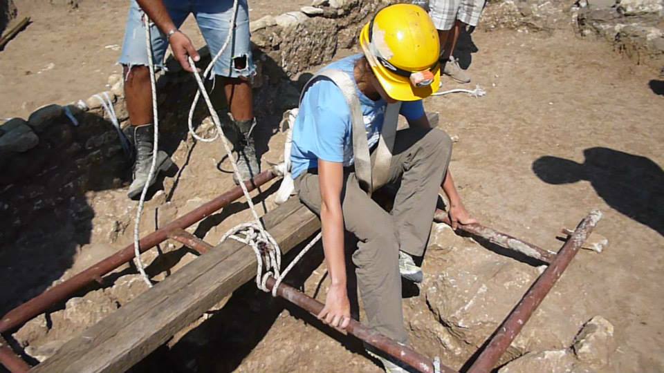 Left: Jessica Lamont being lowered into a well at MTAP in 2015 (Photo N. T. Arrington);
