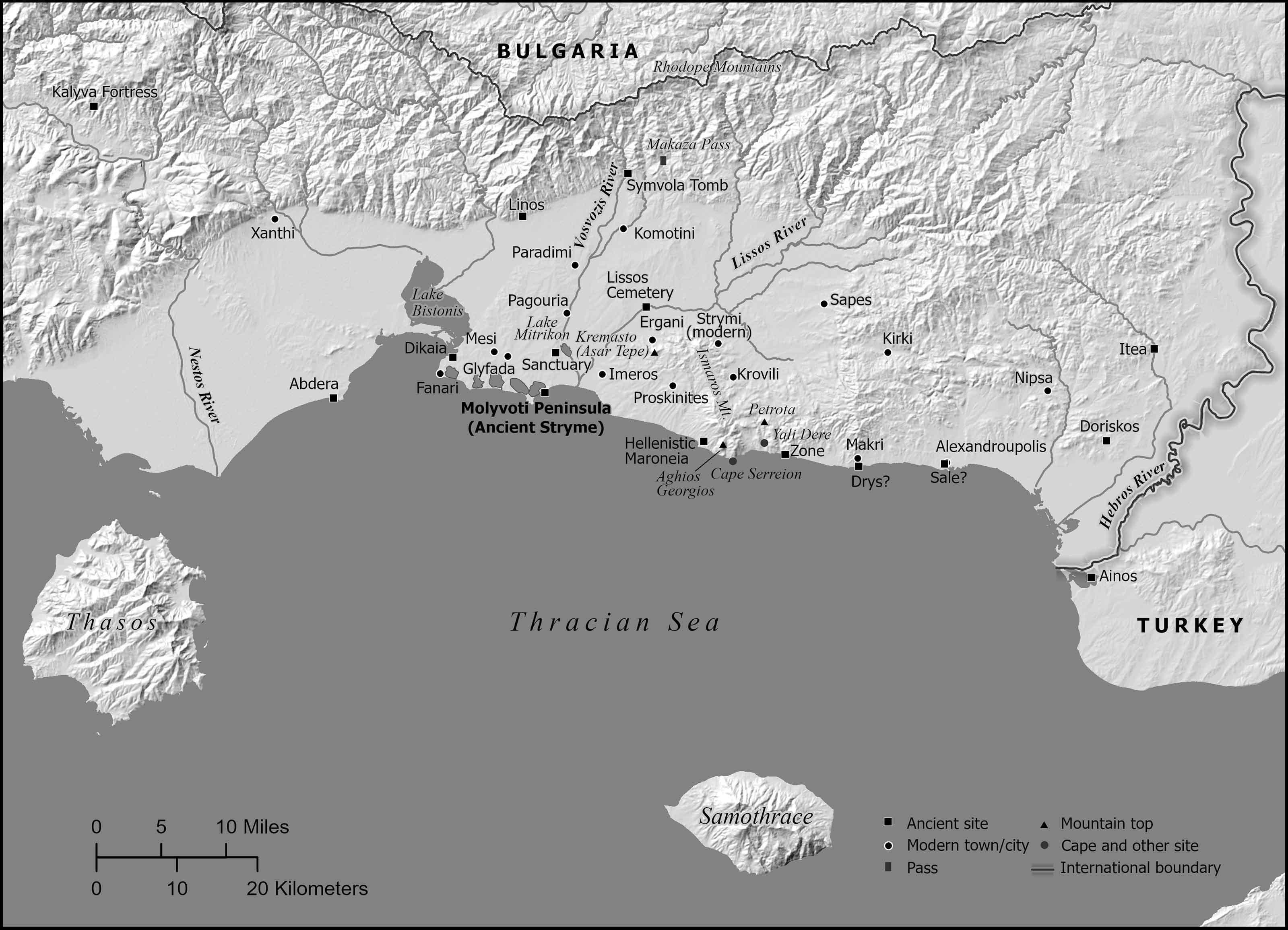 Map of Aegean Thrace, showing the Molyvoti peninsula and surrounding sites (T. W. Shawa)
